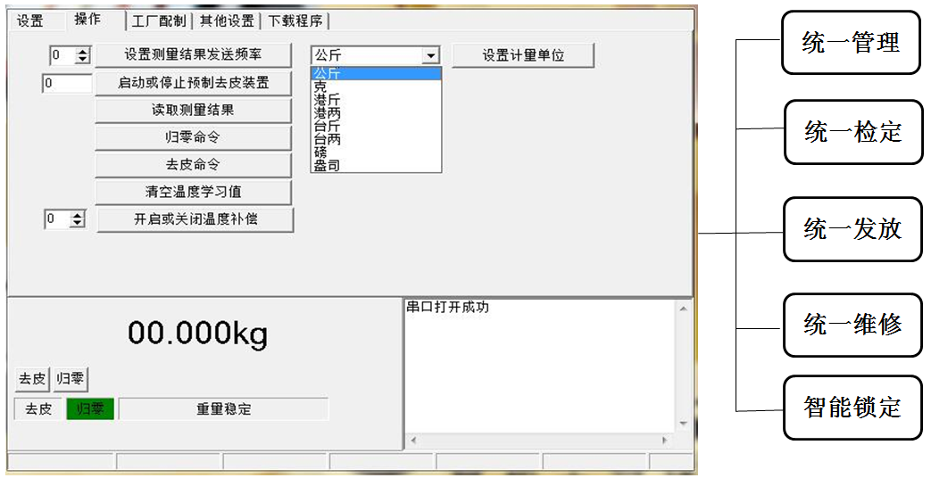 采用科學及不可逆轉的衡器,在市場統(tǒng)一配發(fā)標定溯源秤,杜絕缺斤短兩,結合互聯(lián)網(wǎng)應用,通過技術手段實現(xiàn)防作弊及自動報警功能。 將檢定、校準、開機、關機、使用狀態(tài)等通過互聯(lián)網(wǎng)實現(xiàn)遠程監(jiān)管。